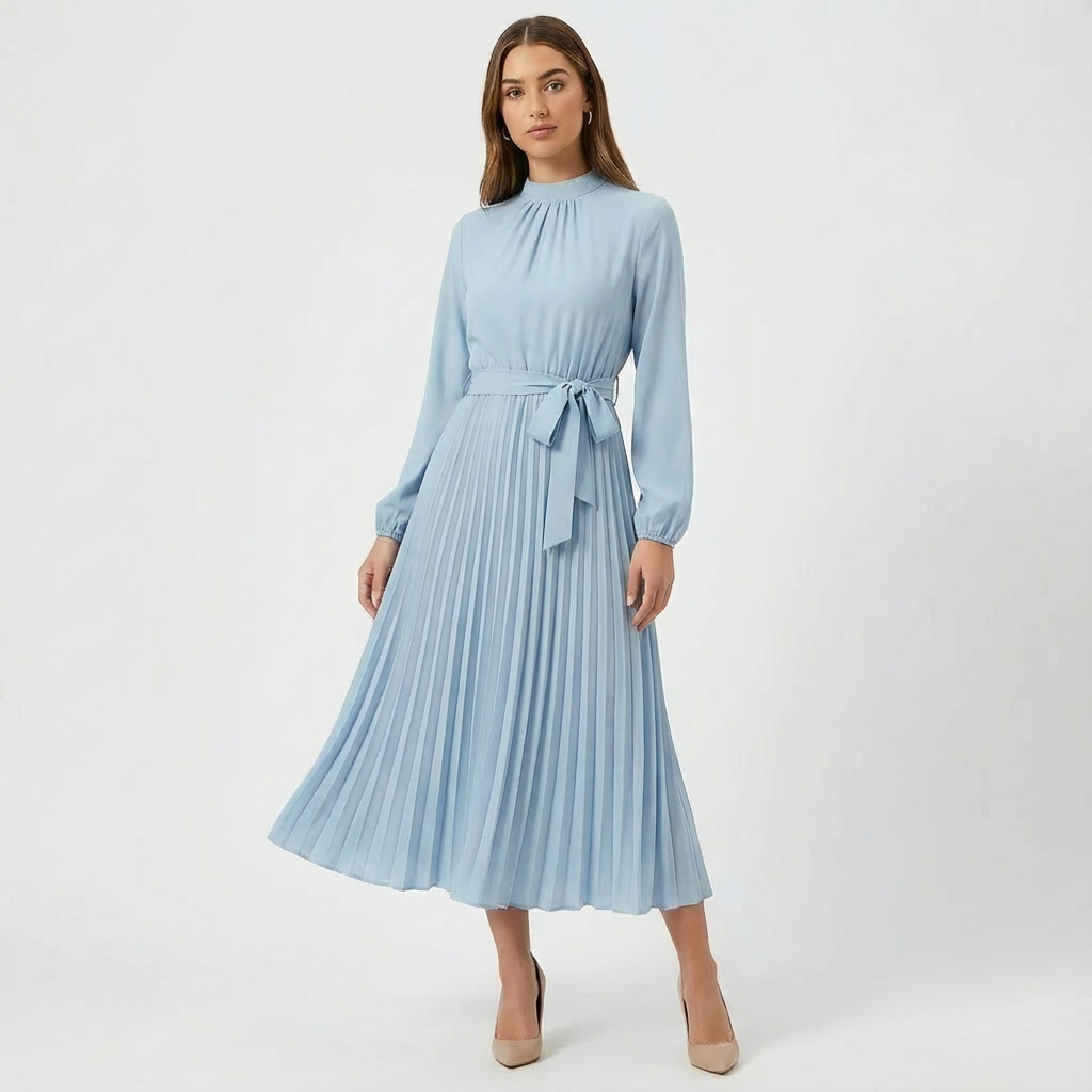 Rowan | Women's Long Sleeve Pleated Midi Dress